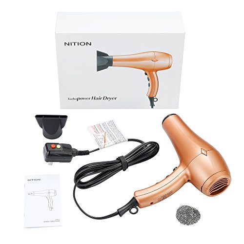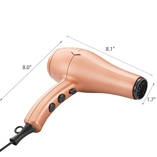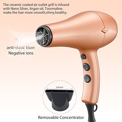 NITION Ceramic Hair Dryer Negative Ion,Ionic Blow Dryer Quick Drying,1875 Watt 2 Speed / 3 Heat Settings,Cool Shot Button,Lightweight,Champagne Gold