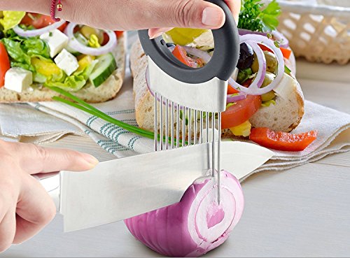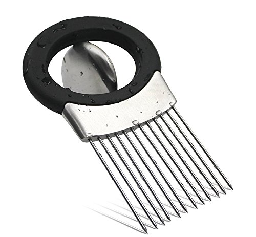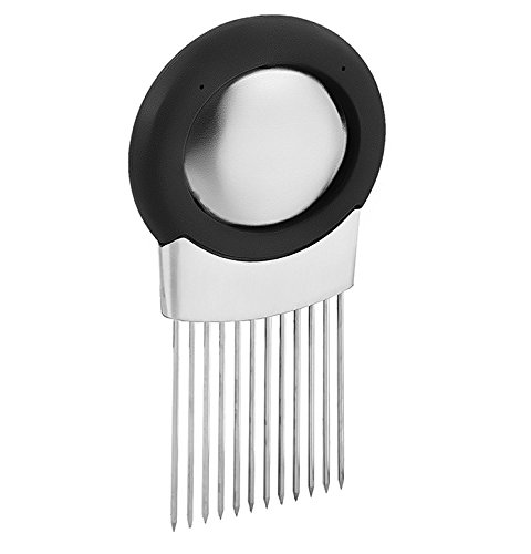 DESIGN:Onion holder features unique stainless steel prongs that allow you to hold & slice onion hands-free