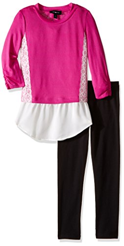 Amy Byer Big Girls' 3/4 Sleeve Top with Shirt Tail and Legging, Magenta, Large