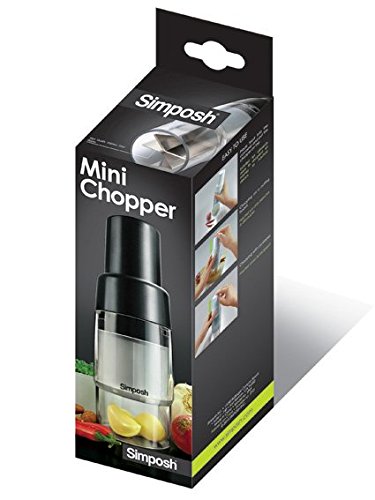 Simposh Mini Chopper - Compact & Powerful Push Button Cutter/Mincer for Fruit Vegetable Nut Herb Onion Garlic. Sharp stainless steel blades. Self-contained base to hold food. Easy Quick & Safe