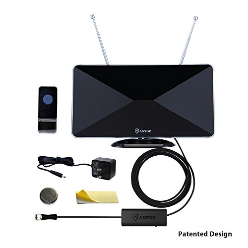 ANTOP Indoor 50 Miles Digital HDTV HD TV Antenna with Built-In Wireless Doorbell Operating at 250+ Feet High Gain Smartpass Amplifier with Built-in 4G LTE Filter OTA TV Reception Black 6ft Cable