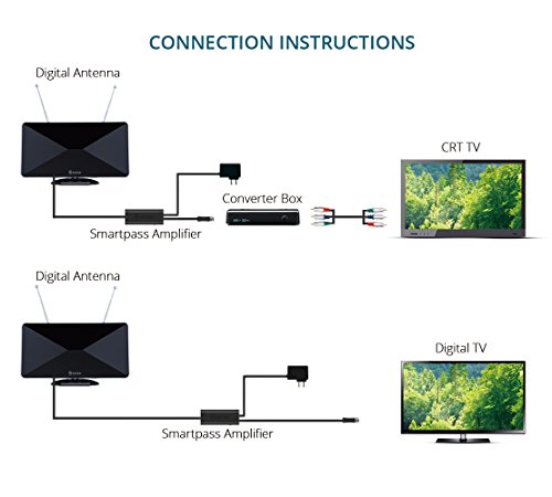◆Antenna effectiveness is influenced by the distance from signal origination point, station signal strength level, building construction, antenna positioning, reflections from nearby structures and any power consumption sources. THE AMOUNT OF FREE OVER-THE-AIR CHANNELS YOU CAN RECEIVE WILL VARY BY AREA AND ANTENNA SELECTION, CHECK SIGNAL AVAILABILITY AT http://dtv.gov/maps