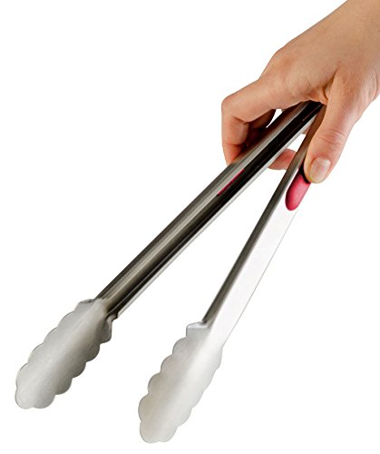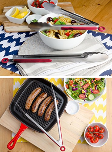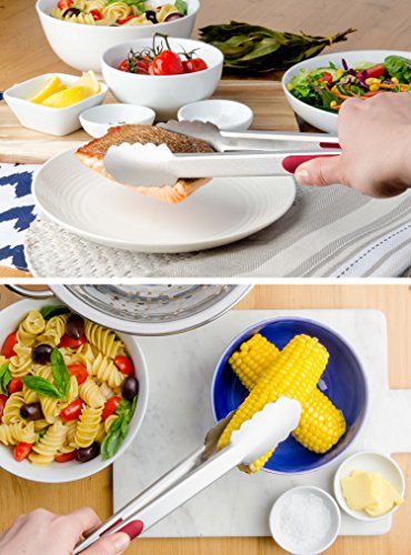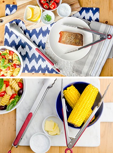 StarPack Premium Grill & Kitchen Tongs 12-Inch, Stainless Steel - Bonus 101 Cooking Tips (Cherry Red)