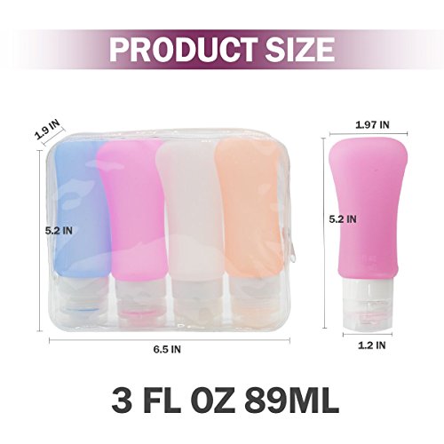 - 🌺 SILICONE TRAVEL BOTTLES: Non-toxic odor, directly to the plane, without consignment. Contains 4 bottles, capacity :89 ml, 3oz*4, color: blue, rose red, orange, white.