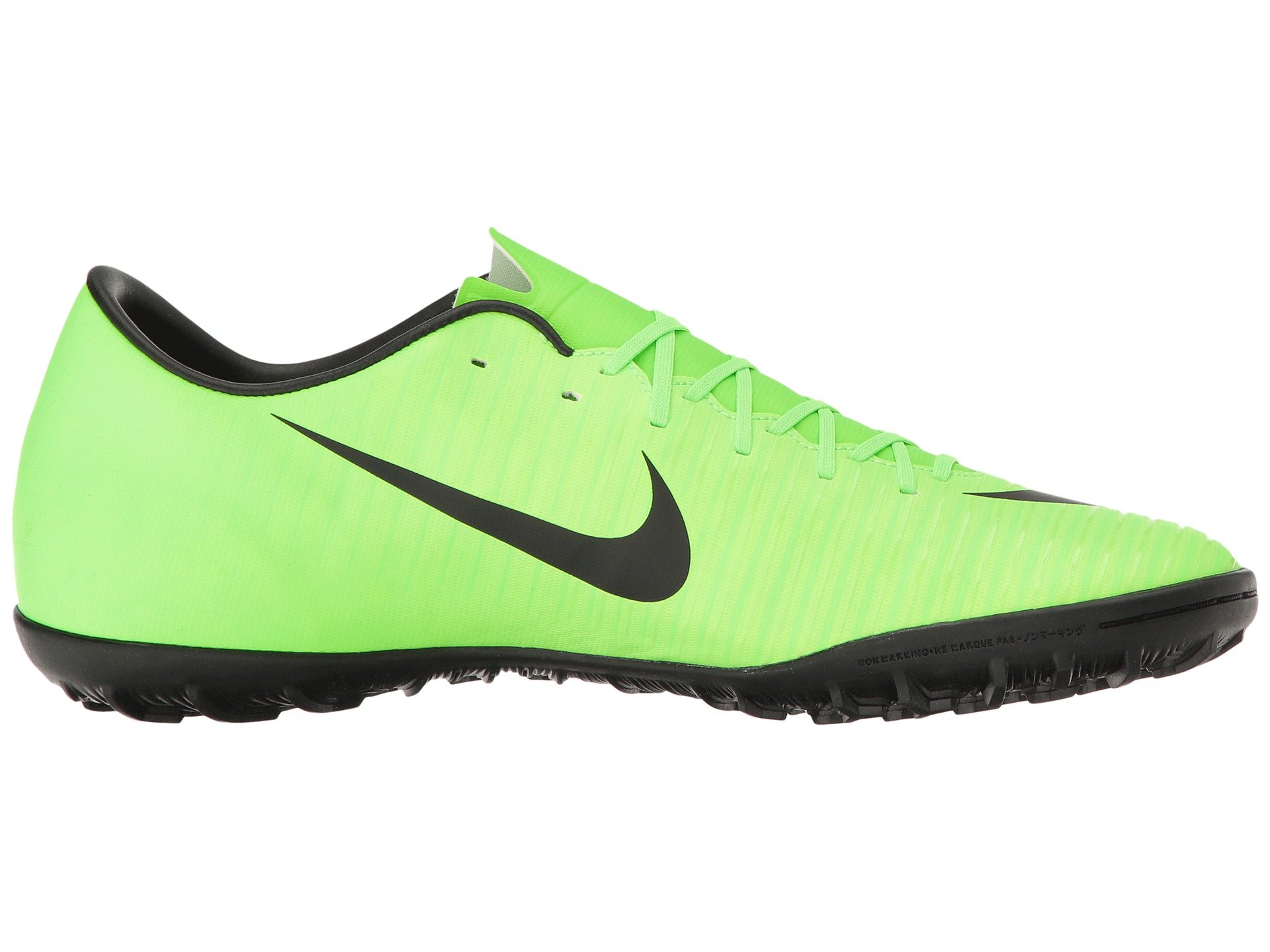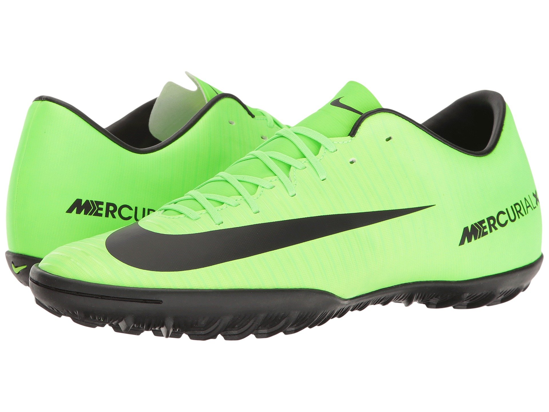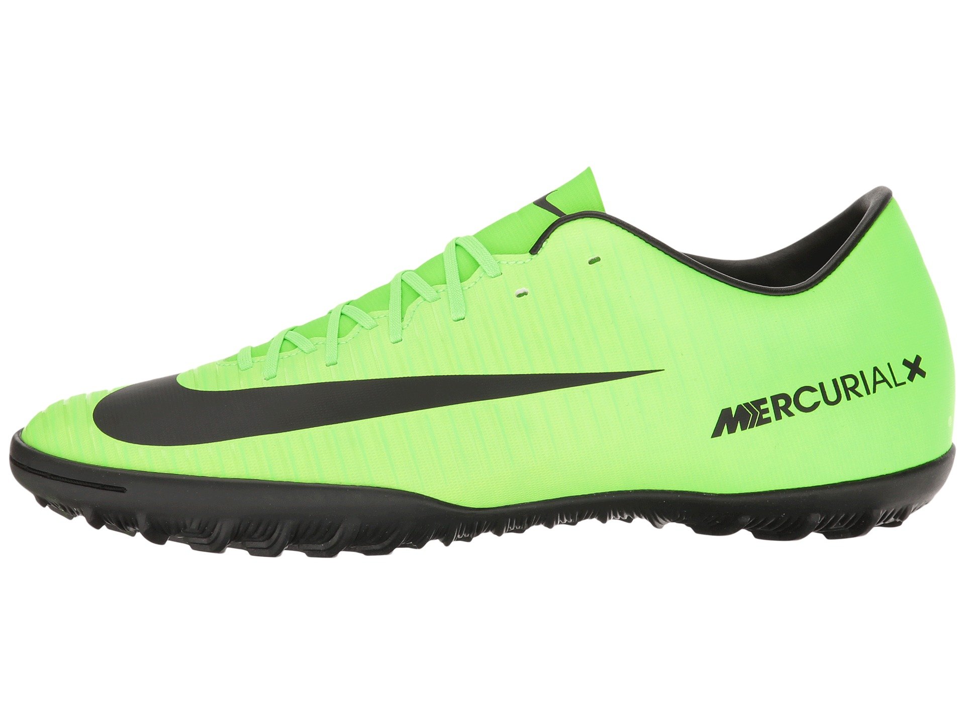 | Product Information SKU: #8665646Storm the field in the Nike? Mercurial Victory VI TF!Tongueless construction provides a locked-down fit.Soccer cleat built for fast play on turf and synthetic surfaces. Soft, supple synthetic leather upper molds to the foot for a responsive fit and explosive speed with total control. Horizontal ridge details provides an enhanced touch.Lace-up closure for a secure, custom fit.Contoured sockliner for added cushioning and comfort.Molded rubber outsole with Vapor traction pattern.urf (TF) outsole with rubber cleats for traction on synthetic surfaces.Imported.Product measurements were taken using size 12, width D - Medium. Please note that measurements may vary by size.Weight of footwear is based on a single item, not a pair.Measurements: Weight: 15 oz |