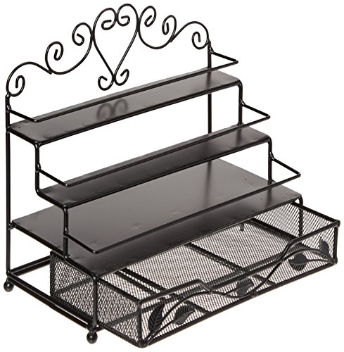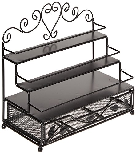 3 Tier Black Metal Heart Scrollwork Design Cosmetic Nail Polish Display Rack w/ Pull-Out Drawer - MyGift