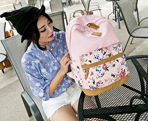 Preppy Korean Canvas Floral Casual Backpack College Student Satchels Bags
