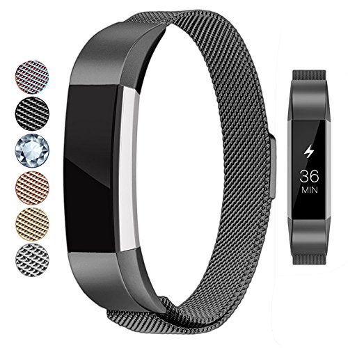 -. Title : For Fitbit Alta HR and Alta Bands, Milanese Loop Stainless Steel Metal Alta Bands Replacement Accessories with Unique Magnet Lock, Large, Black
