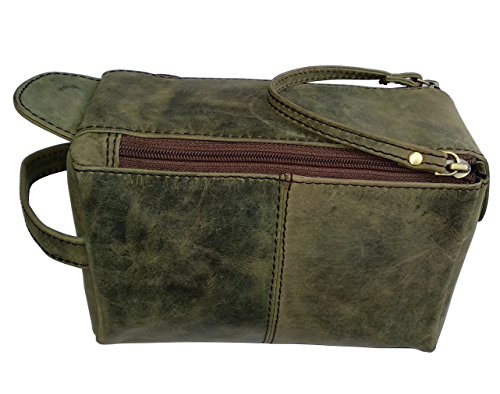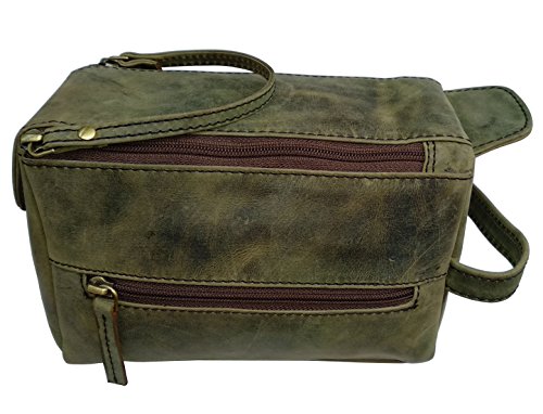 KK's Leather Buffalo Genuine Leather Toiletry Bags Dopp Kit Shaving and Grooming Kit Bags for Travel BAgs ~ Gift for Men Women ~ Hanging Zipper Leather Makeup Bags Bathroom Leather Cosmetic Pouch Bags