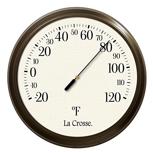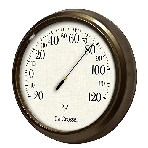 -. Brand : La Crosse Technology -. Feature : Dimensions: 2L x 9W x 10.25H in. / Constructed of high impact resin / Brown and black finish / Coil precisely reads temperature / Easy to read number tack in 2 degree increments -. Label : Jensen Distribution Services -. Manufacturer : Jensen Distribution Services -. MPN : 3190-0129 -. PackageQuantity : 1 -. PartNumber : 3190-0129 -. ProductGroup : Kitchen -. ProductTypeName : KITCHEN -. Publisher : Jensen Distribution Services -. Studio : Jensen Distribution Services -. Title : LaCrosse Technology 8 in. Round Thermometer