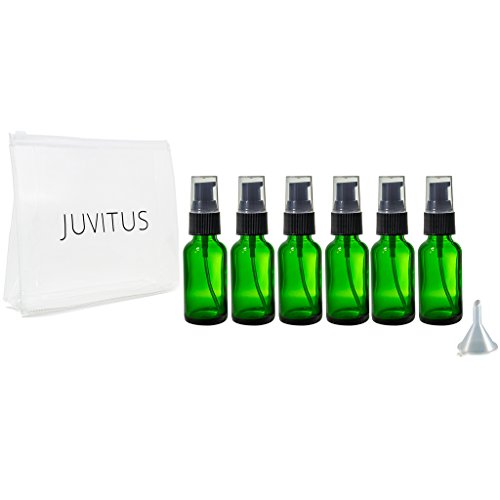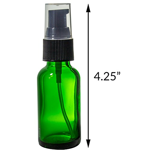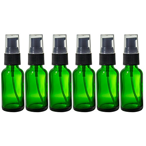 Green Glass Boston Round Treatment Pump Bottle - 1 oz (6 Pack) + Clear Travel Bag and Funnel
