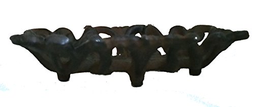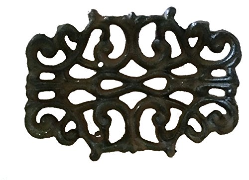 -. Feature : Vintage shabby chic design will compliment your French County decor / Solid cast iron with rustic brown brush antique finish; elegant scrolled detail / Measures Approx. 5 1/1 (L) x 2\3 1/2 " (w) x 1.5" (h); weight 10.3 oz / Indoor/outdoor use. Charming bathroom or patio/garden accent / 4 small round cast iron feet on bottom designed to raise dish off counter