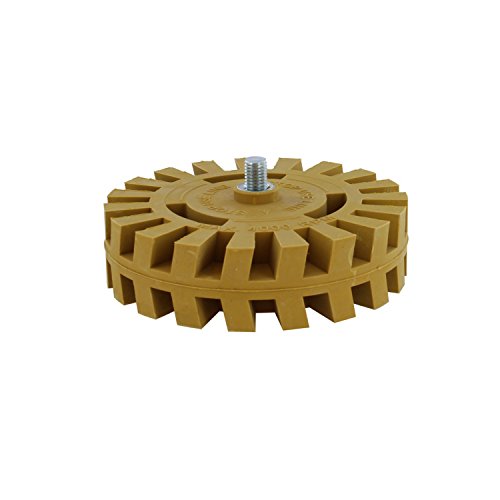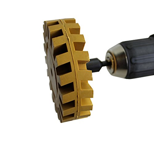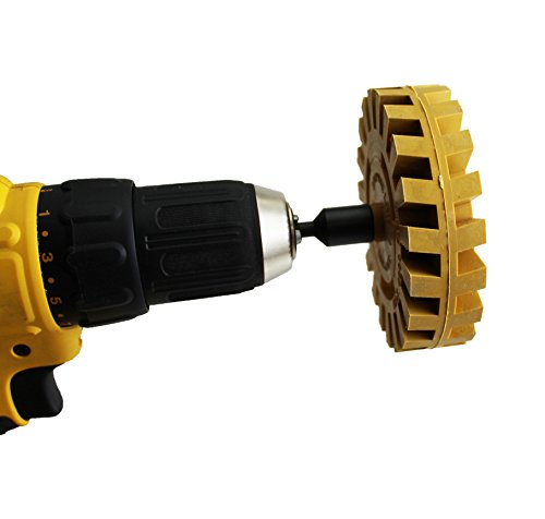 OBLITERATE DECALS: Use the ABN Rubber Eraser Wheel with Drill Adapter 1-Pack to remove any vinyl, decal, graphic, double-sided molding tape, striping, and trim on your car, truck, RV, or similar vehicle; 1-inch width x 4-inch diameter (larger than others!); Natural rubber high-grade medium density drill attachment tool; For use with electric drill with maximum 4,000 RPM (best results between 1,500 and 3,000) (Not for use on lacquer coatings and not effective on some reflective tapes)