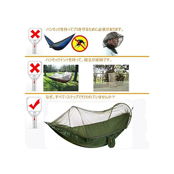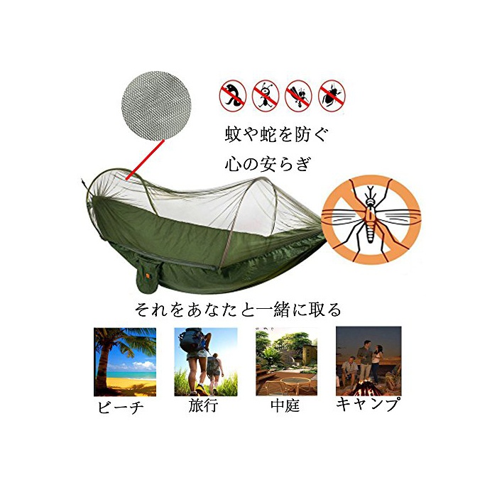 원본상품명: Egymcom キャンプ アウトドア ハンモック モスキ?トネット 蚊帳付き 蚊よけ 自立式 ?量 ポ?タブル キャリ? パラシュ?ト ナイロン ファブリック 290 * 145cm 負荷200KG