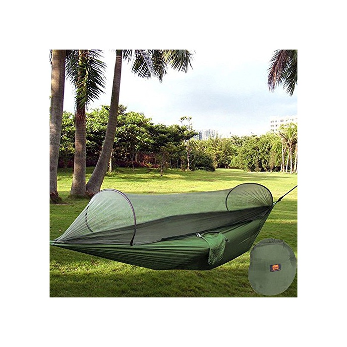 Egymcom 캠프 아웃도어 해먹(hammock) MOS 키도넷토 모기장 부착 모기 피하 자립식 경량 포터블 캐리 파라슈트 나일론 fabric 290 * 145cm 부하200KG