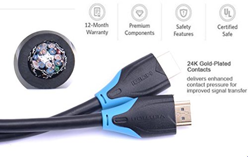 HDMI CERTIFIED - 24k gold plated plug, standard 19 Pin. Premium construction: 28AWG Pure Copper Conductors, Triple Shielding and Gold-Plated Full Metal Jacket Connectors