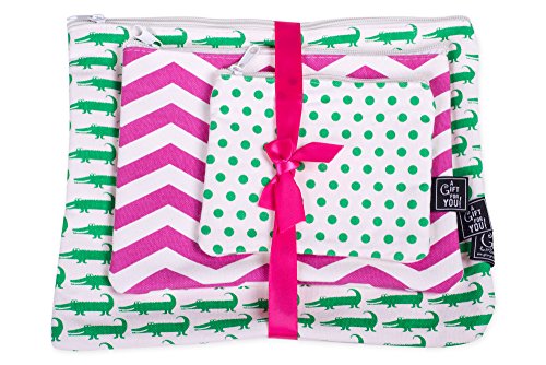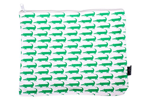 Crocodiles Set of 3 Pink Green 12 x 5 Inch Cotton Patterned Zippered Pouches Set