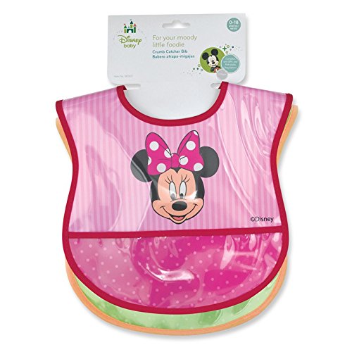 -. Feature : Beloved Disney Characters / Easily Cleaned Vinyl with crumb catcher pocket / Perfect for mealtime / Color or pattern may vary from picture shown with options available for boys and girls / For babies 0-18 months / Minnie Mouse Crumb Catcher Bib 2pk