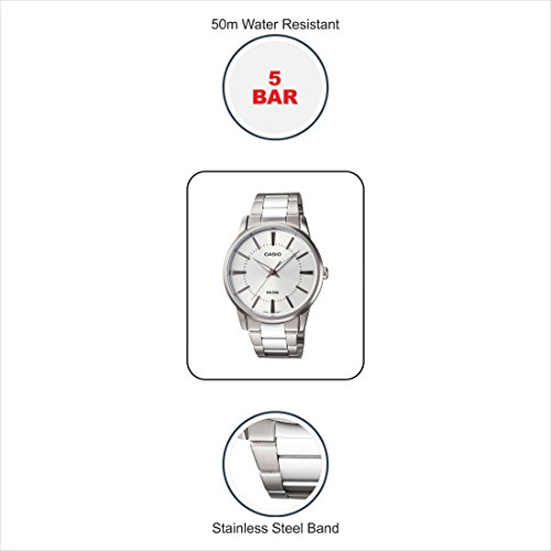 Brand, Seller, or Collection Name:Casio Model number:EAW-MTP-1303D-7AV Part Number:A494 (A494) Item Shape:Round Dial window material type:Mineral Display Type:Analog Clasp:Deployment-clasp-with-push-button Case material:Stainless steel Case diameter:40 millimeters Case Thickness:8 millimeters Band Material:Stainless steel Band length:Men's Standard Band width:20 millimeters Band Color:Silver Dial color:Silver-Tone Calendar:No Special features:Luminous, measures-seconds Item weight:8.96 Ounces Movement:Quartz Water resistant depth:50 Meters