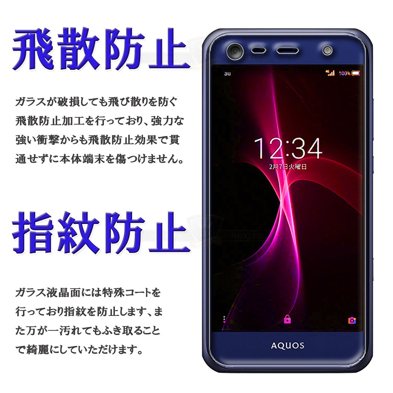 【Product characteristics 4】 Hardness 9H perfectly scratches scratches due to sharp objects, scattering prevention processing processed to prevent scattering of glass even in case of breakage by any chance.
