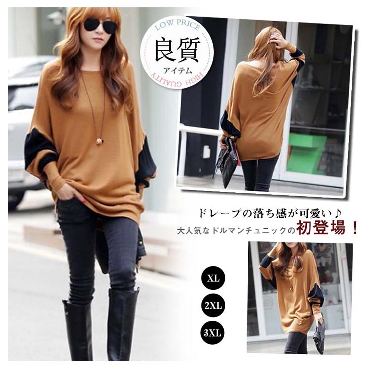 | ドレープの落ち感が可愛い♪大人気なドルマンチュニックの初登場!軽くて柔らかな肌触りの良いニットソーは1度使ったらヤミツキに!!たっぷりと生地を使ったゆったりとしたドルマンチュニックは体型カバーにも重宝します。丈はお尻が隠れるぐらいで、スタイルUPも実現^^シンプルにショートパンツなどを合わせて極ゆるSTYLEがおススメ☆★ | |