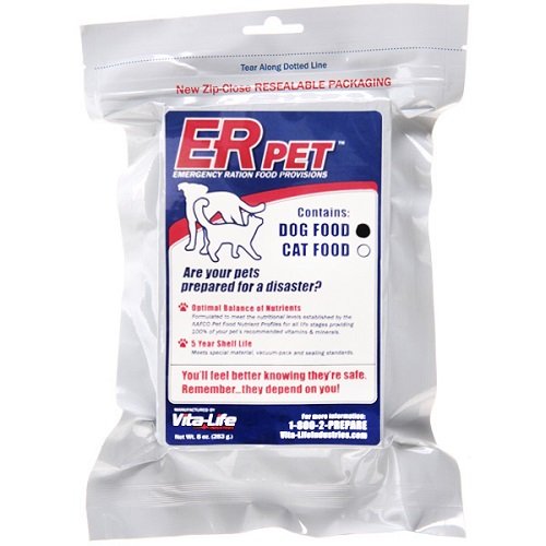 FEMA recommends planning ahead for disasters by preparing a minimum of three days’ worth of food and water for you and your pets. Stores may be closed for extended periods of time in an emergency, so stock up on quality food that will last until you need it. ER-Emergency Ration is a US Department of Homeland Security / US Coast Guard approved manufacturer of quality emergency food rations and a supplier to the American Red Cross and ASPCA Pet Survival Kits. ER-Emergency Ration dry dog food has been hermetically vacuum sealed and specially packaged to guarantee safe storage up to a 5-year shelf-life. Rations are formulated to meet the nutritional levels established by AAFCO’s dog food nutrient profiles. Food needs will be different for each animal, but ER-Emergency Ration 8 ounce packets can provide up to three days’ worth of nutrition in an emergency. Larger animals will need more food, so plan accordingly for your pets and stock up on ER-Emergency Ration pet food.Feature