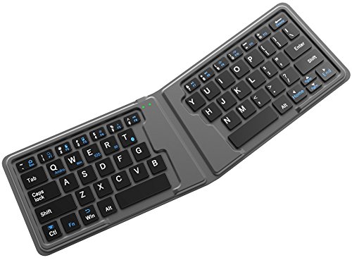 -. Feature : PAIRS FAST, EASY TO USE: Open to turn on, close to turn off. Links with Bluetooth as soon as it is opened. Spill-resistant. Powerful battery, a single charge lasts 3 month. / FULL-SIZE also ULTRA-SLIM: Palm size when folded, fits right in your pocket or briefcase. When opened up, you'll be able to get some work done with the comfortable full-size keys. That's not like the other crammed compact keyboards! / MULTI-PURPOSE CASE INCLUDED: Comes with a sleek protective case, also provides functions as a stand, provides support / holding for various tablets and phones. / PROTECT YOUR HAND / WRIST: The ergonomic design keep keys within easy reach, while straightening wrists against hurts from stain and repetitive stress injuries in long term. / CROSS COMPATIBLE with Windows/Android/iOS/Mac OS: for Bluetooth supported devices such as smartphones, tablets, computers, with hotkeys provide shortcuts to the most commonly used functions such playback control, copy paste, volume and much more.