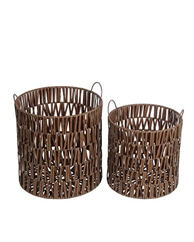 Privilege 18821 2 Piece Round Resin Wicker European Basket, Brown, Medium