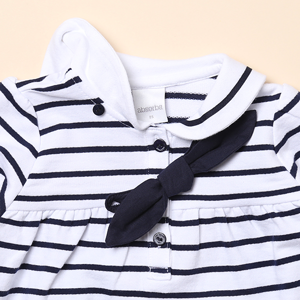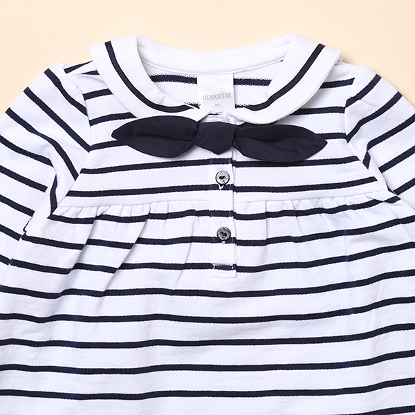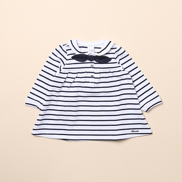카라와 스트라이프로 포인트를 준 마린느낌의 원피스입니다