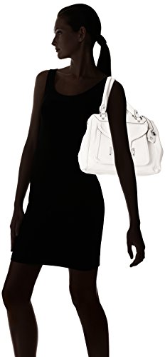 Triple-entry satchel in pebbled faux-leather texture featuring removable logo fob