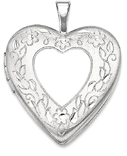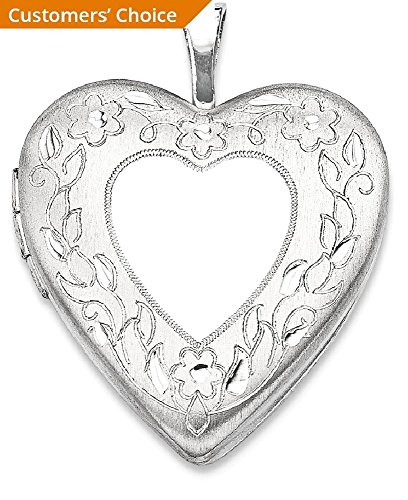 ICECARATS DESIGNER JEWELRY 925 STERLING SILVER 20MM FLORAL BORDER HEART PHOTO PENDANT CHARM LOCKET CHAIN NECKLACE THAT HOLDS PICTURES