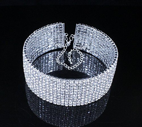 Sparkling first class Clear Genuine Austrian rhinestones are set on shiny metal setting. All rhinestones shines a lot and are prong set by hands. This choker/necklace is a real attention getter!