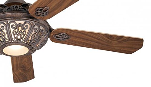 -. Feature : Durchmesser: 132 cm / für Räume bis 25m² / Flügelfarbe: Nussbaum / amerikanischer Kirschbaum / Opulente gusseiserne Verzierungen an Gehäuse, Leuchte und Flügelhalter. / Winter- und Sommerbetrieb über Schiebeschalter am Gehäuse / inklusive Fernbedienung