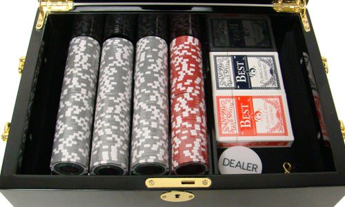 Studio : Brybelly.com Publisher : Brybelly.com Binding : Misc. Product Description This is our Ace Casino laser graphic poker chip set. This set includes 500 clay composite casino grade poker chips in our beautiful hi gloss black mahogany wooden case. This set also features a free dealer button and 2 decks of plastic coated playing cards. Each chip contains a laser graphic inlay that will sparkle tremendously and make your chips the best on the block.