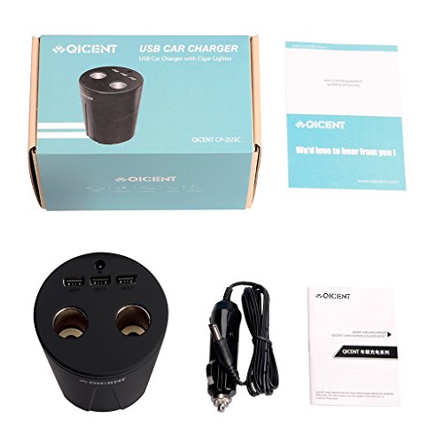 - Feature : Built-in USB Port:3 Usb Port 4.4A total output enables you to rapidly charge Apple Samsung GPS simultaneously at once / Dual Cigarette Lighter: 12 Volt Power Adapter Converters a perfect combination of functionality and aesthetics / Safety Guaranteed : Circuit protections - over-current short-circuit and over-temperature protect you device. / Perfect Cup Design: Suitable For Car Cup Holder Position Cigarette Lighter Socket Adapter Car Charger Cup Holder enough for Personal Fridge & simultaneous use of a variety of portable appliances in your vehicle / Package contents: QICENT® 36Watt USB travel car charger, user's guide, warranty card; 24 Months warranty and friendly customer service
