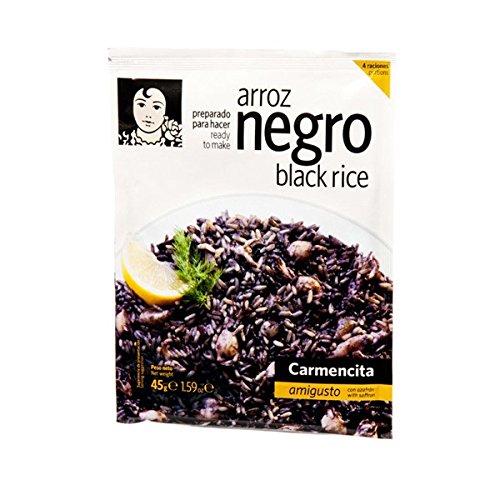 -. Binding : Grocery -. Brand : Carmencita -. EAN : 8413700158872 -. Feature : Get the authentic flavor of Spanish Black Rice with this select seasoning mix from Carmencita / Black Rice Seasoning Mix with Saffron / Contains 1 packets of 45 grams. Each packet makes 4 servings / Cooking time of 15 to 20 minutes / A portion of the proceeds of this sale are DONATED to charities that help preserve the environment -. IsAdultProduct : 0 -. Model : 2276 -. MPN : 2276 -. NumberOfItems : 1 -. PackageQuantity : 1 -. PartNumber : 2276 -. ProductGroup : Grocery -. ProductTypeName : GROCERY -. Size : 45 grams -. Title : Black Rice Seasoning Mix Spices 4 Servings Carmencita Arroz Negro Spice Mix with Saffron Gluten Free