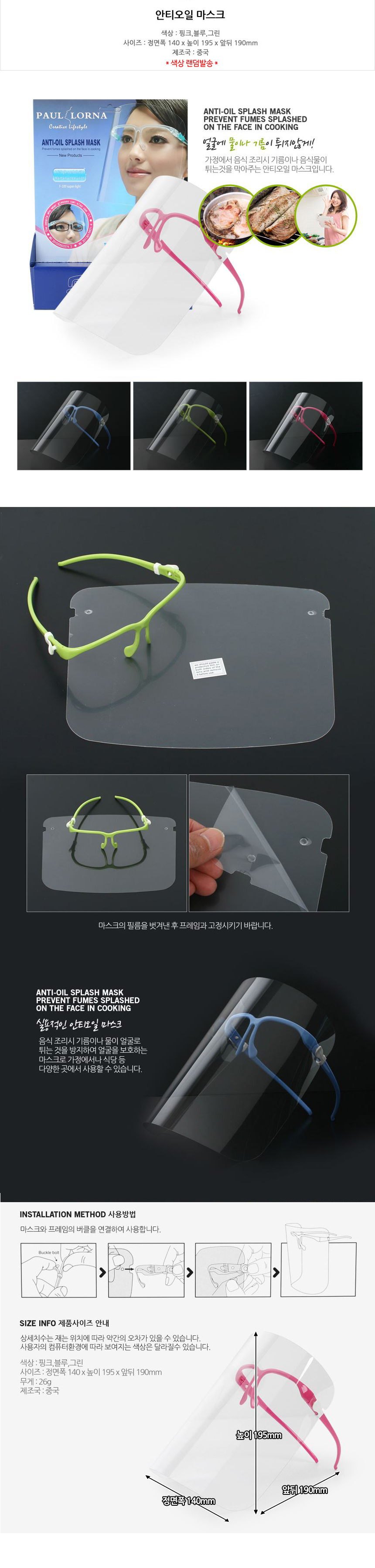 <상품명 : 안티오일마스크 랜덤발송 청결 음식조리 투명마스크 주방마스크 일회용마스크 주방용품>