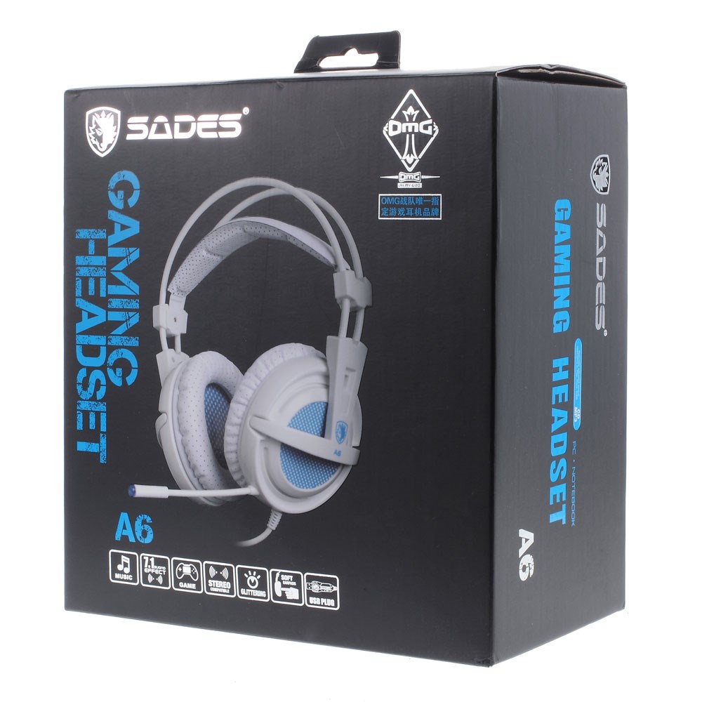 • 1 x SADES A6 7.1Channel Over-Ear USB Stereo Gaming Headset with Mic & Breathing Light - White
