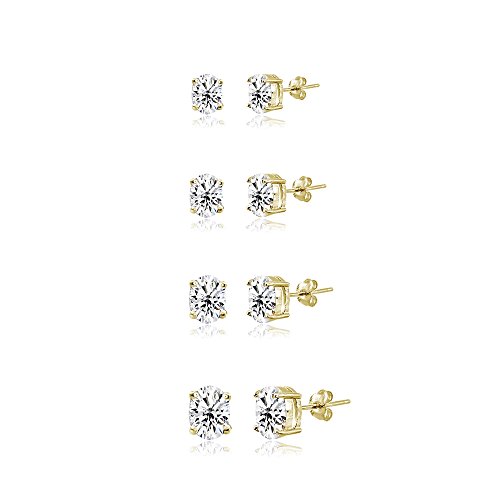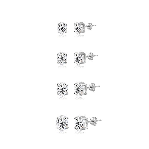 FEATURE - This fine jewelry set display four pair of prong set oval-cut CZ studs in various sizes. The set includes a pair of 5x3mm, 6x4mm, 7x5mm and 8x6mm CZ earrings. This earrings set in fine jewelry should be an addition to your cubic zirconia CZ jewelry collection. It can be purchased as stud earrings for men, stud earrings for women or stud earrings for teen girls. These CZ earring studs are great accents for anything in your CZ jewelry for women or CZ jewelry for teen collections!