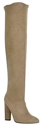 Refresh Footwear Women's Pointed Toe Round Heel Over the Knee Sock Boot