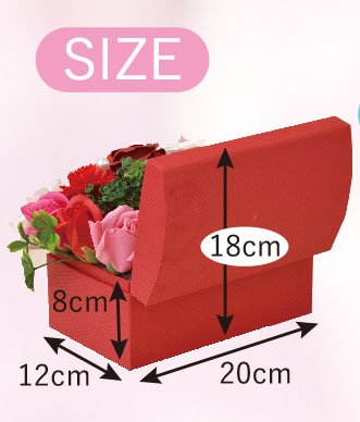 - 【ブーケサイズ】直径16×高さ24cm【外箱サイズ】縦18×横18×高さ28cm ギフトバック付き【ボックスサイズ】高さ18×幅18×奥行15cm【外箱サイズ】高さ20×幅27cm×奥行19cm