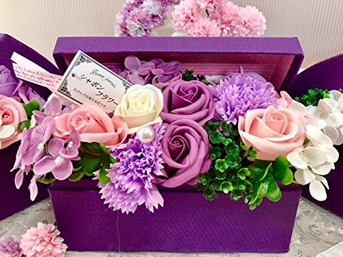 フレグランスソープフラワーはギフトにピッタリの石鹸の香りがする観賞用のお花です。大切な方へのプレゼントととして喜ばれる人気のシャボンフラワーです。ブーケはギフトバックに入っているのでいろんな飾り方ができます。お花があふれるボックスはそのまま飾っていただいてもとても華やかです。玄関やお部屋に置いていただくと香りが漂います。枯れることがないので長期間飾っていただける商品です。