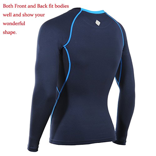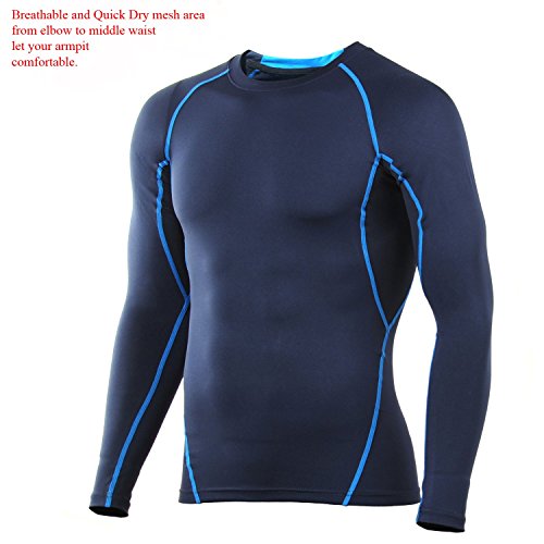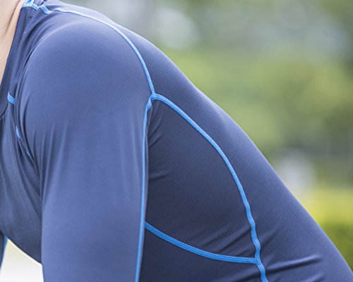 4ucycling Compression Tight Shirt Base Layer Breathable Sleeves Fit Slim Sports Design for Work Out Blue