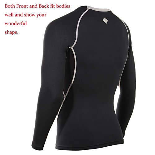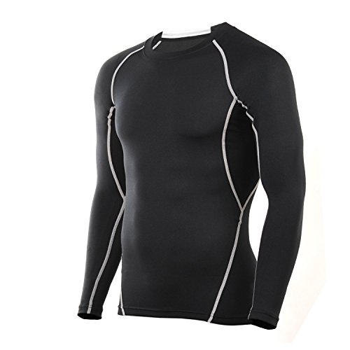 4ucycling Compression Tight Shirt Base Layer Breathable Sleeves Fit Slim Sports Design for Work Out Black