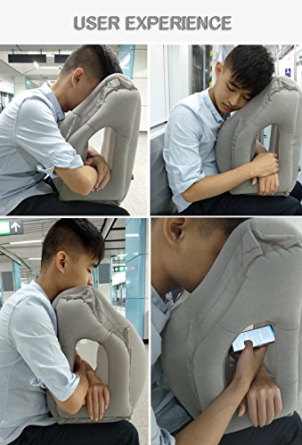 [FEATURES] ♥ It's ergonomic design helps you fall asleep, and stay asleep longer in a natural forward position ♥ Easy to blow up, comfortable to lay on at every angle, so you can choose your most comfortable posture to rest ♥ It has open space on the side so you can comfortably hug it to rest your arms, and watch movies or play games on your phone ♥ Compact and lightweight. Portable neck pillow is suitable for Airplanes, Cars, Buses, Trains, Office Napping, Camping