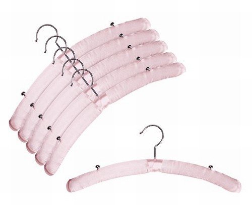 -. Feature : 15" Length / Light Pink Satin w/ Chrome Hook / Polished Chrome Studs on Shoulders for Hanging Straps / Sold in Packs of (6) Hangers