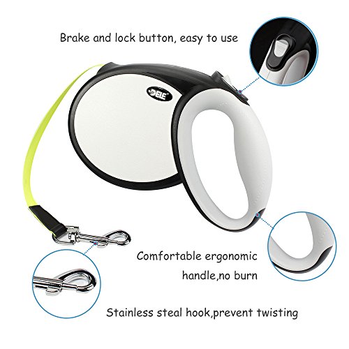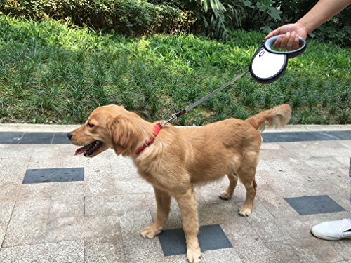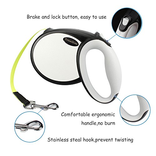Made by ABS and TPR, with a humanized rubber handle. The secure heavy duty retracting mechanism is able to extend or retract the leash smoothly and easily.