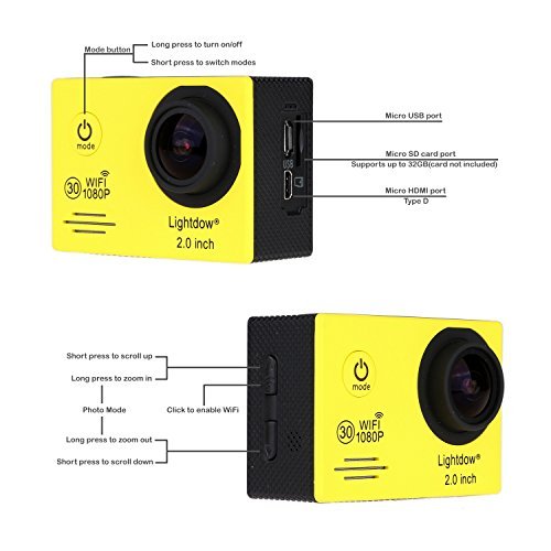 상품명: Lightdow LD6000 WiFi 1080P HD Sports Action Camera Bundle with DSP:Novatek NT96655 Chip, 2.0-Inch LT