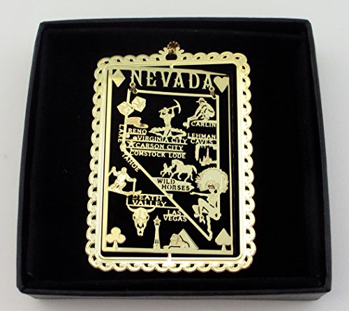 Nevada State Brass Ornament Black Leatherette Gift Box