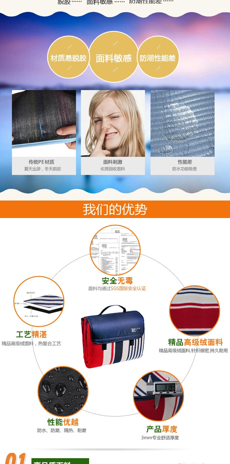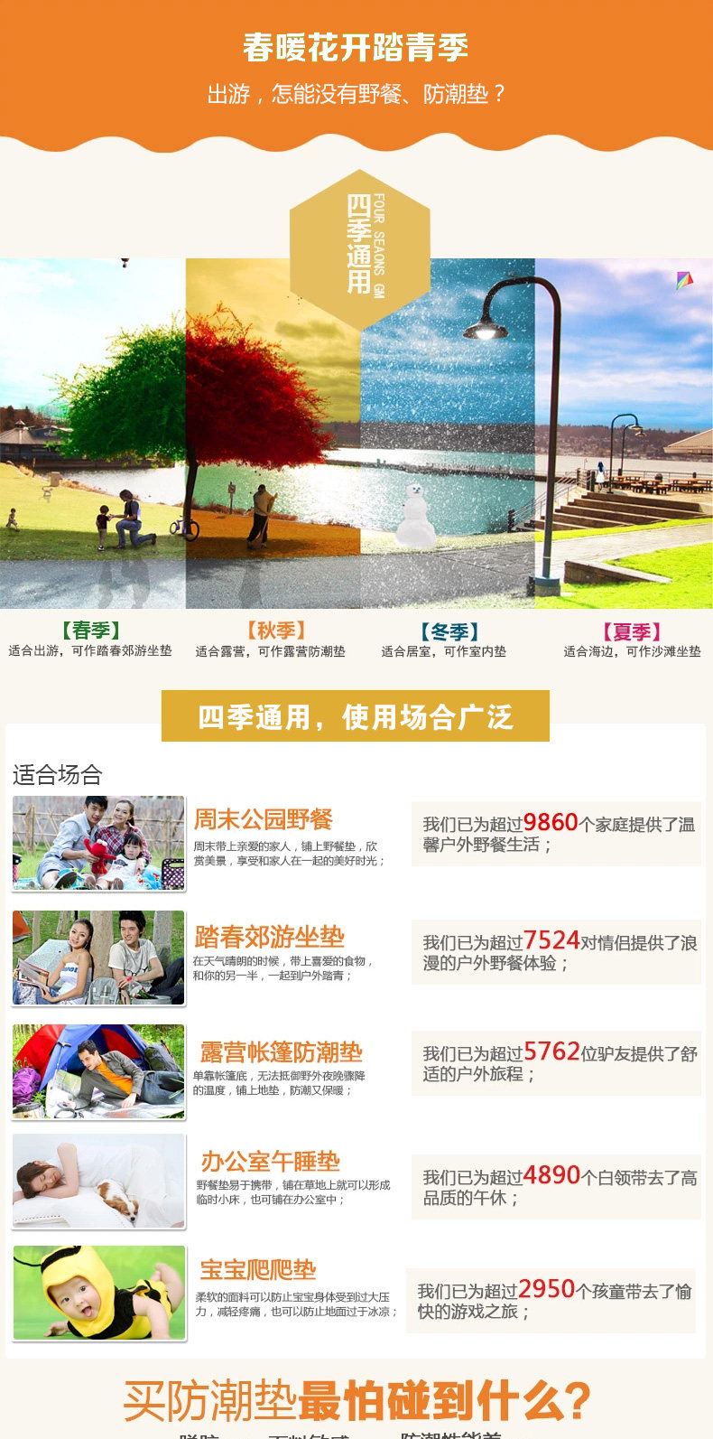 ?力伯侬户外大防潮垫 野餐垫踏青野炊春游垫防水加大加宽